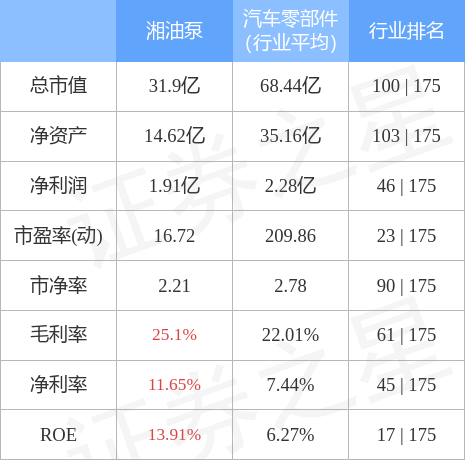 湘油泵主要指标及行业内排名如下:
