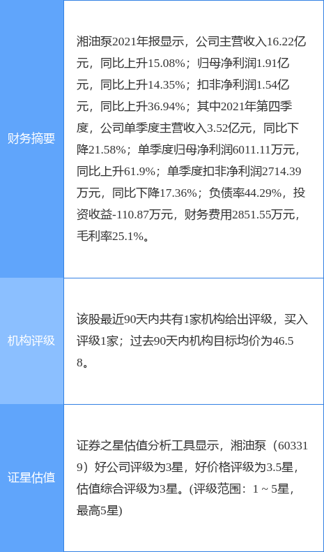 湘油泵(603319)个股概况: