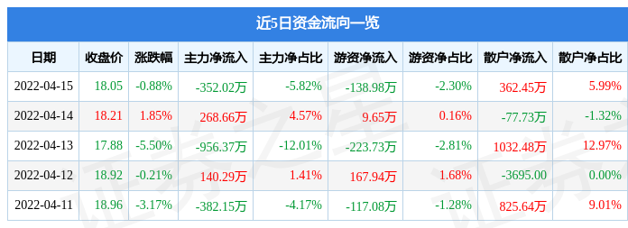资金流向数据方面,上个交易日主力资金净流出352.02万元,游资资金净流出138.98万元,散户资金净流入362.45万元。近5日资金流向一览见下表: